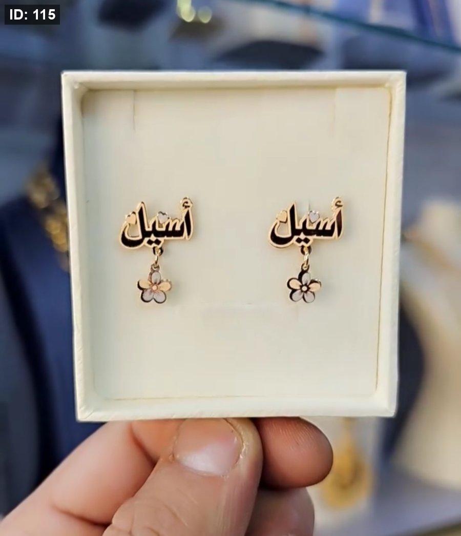 حلق اسم مع وردة نازلة – مطلي بذهب 24 قيراط تميّزي بإطلالة فريدة مع هذا الحلق المصمم خصيصًا باسمك والمزين بوردة نازلة ناعمة تضيف لمسة من الرقي والأنوثة: