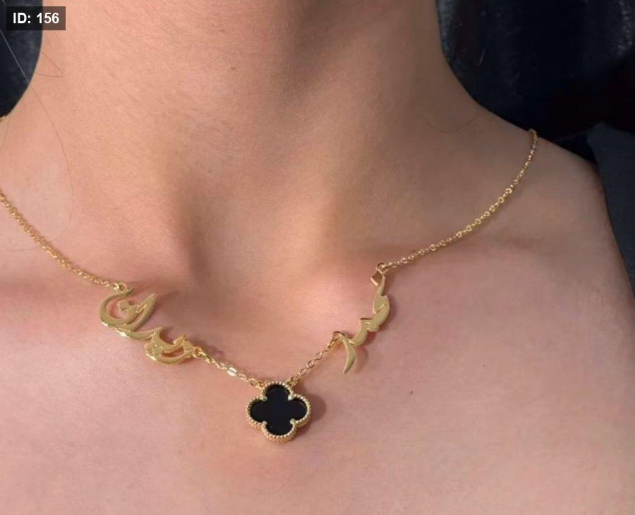 صمّم اسمين بطابع Van Cleef الفاخر لون أسود ملكي، مطلي بالذهب عيار 24 هدية مثالية، أو قطعة تعبّر عنك وتخطف الأنظار تفصيل خاص – جودة عالية – لمسة فنية