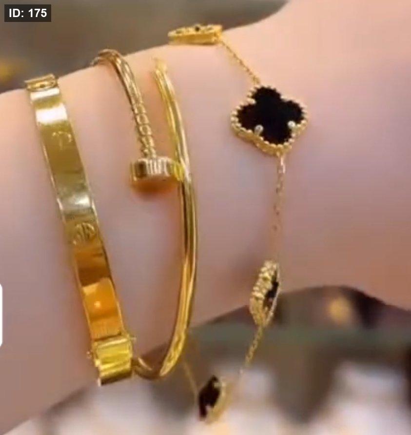 جميع الأساور مطلية بـذهب أصلي عيار عالي، مع ضمان الجودة والثبات. تصميم متناسق وعصري يناسب جميع الأذواق، سواء للإطلالات اليومية أو المناسبات الخاصة.