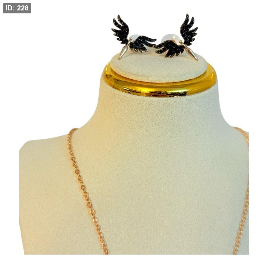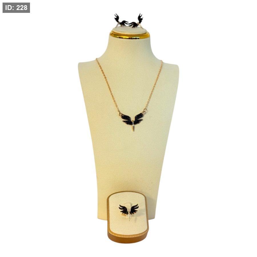 طقم عنقاء باللون الاسود المميز ( عقد وحلق وخاتم )