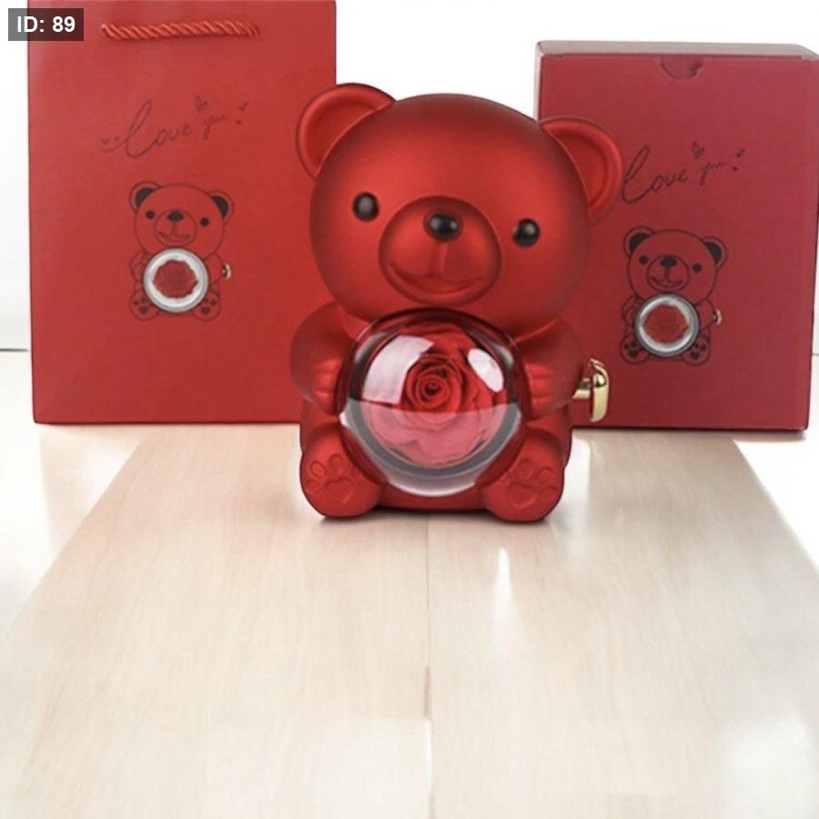 دب الوردة الأبدية" هدية فريدة تجمع بين الجمال والرومانسية! بداخل الدب وردة طبيعية معالجة لتعيش مدى الحياة، برائحة ساحرة تأسر القلوب. وخلف الوردة، عقد بتصميم مميز تختاره بنفسك، ليحمل لمستك الخاصة. مثالي كهدية للحبيبة، أو لعيد ميلاد، أو لمناسبة لا تُنسى.